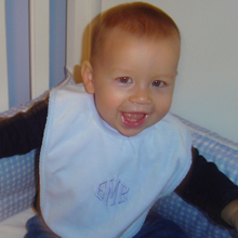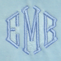 These beautiful luxorious velour bibs are lined with plush terry cloth. Bibs have a ribbed neck and are ideal for meal time. These machine washable bibs may be embroidered with three initials or a name up to 15 characters.